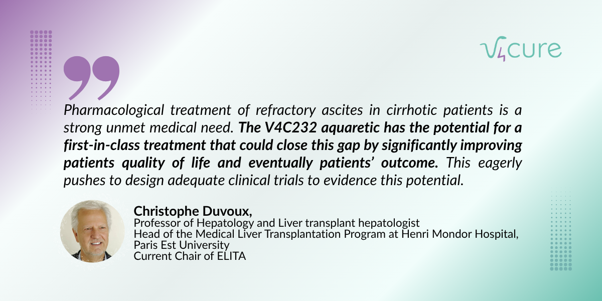 La nostra prioritat actual és demostrar l'eficàcia clínica del V4C-232 en pacients hospitalitzats amb ascites refractària, i s'esperen les primeres dades en pacients d'un assaig de fase 1b el 2027.