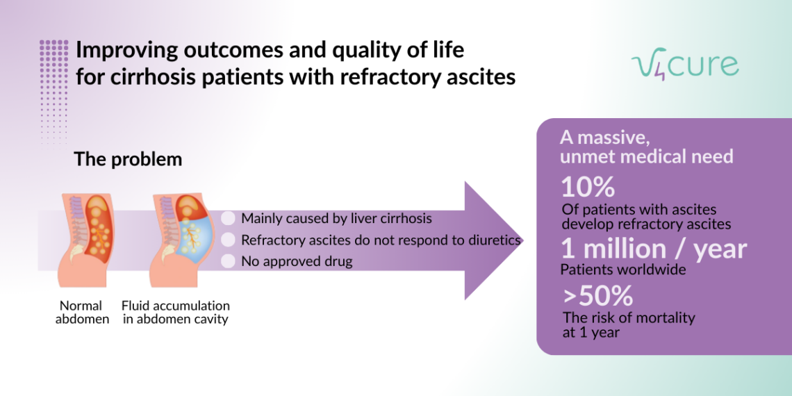 Per establir una forta entrada al mercat, ens centrem primer en l'ascites refractària en la cirrosi, una afecció greu sense tractaments farmacològics aprovats i amb una competència mínima. Avui dia, els pacients han de sotmetre's a repetits procediments hospitalaris per drenar el líquid acumulat o recórrer a intervencions invasives com la col·locació de shunts o el trasplantament de fetge. Tot i això, l'accés als trasplantaments és limitat: només aproximadament la meitat dels pacients elegibles en reben un. Aquesta bretxa terapèutica urgent subratlla tant la urgència clínica com el potencial de mercat del V4C-232.